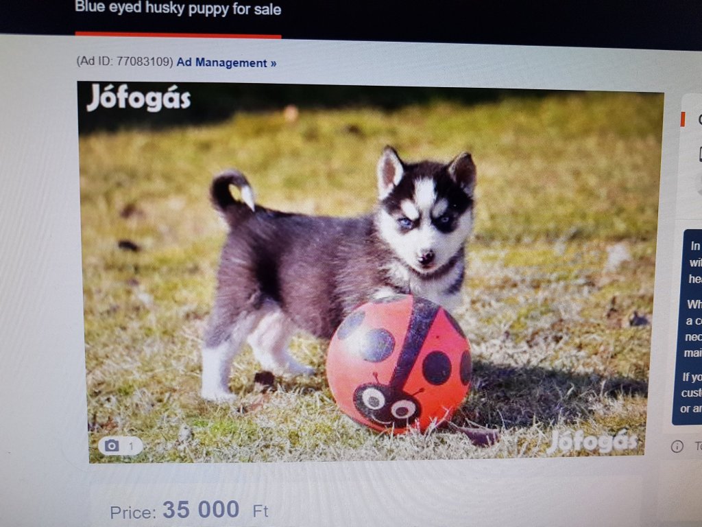 Of course now here we had to keep our promise. I decided to do some research on pedigree breeds available in Hungary and found to my dismay that they were way out of our price range. I searched online for private sellers, and was nearly conned by a dubious man, wanting us to send money upfront so he could send a dog by special transport! Alarm bells rang, we did not proceed. Finally I found an ad for a Husky puppy located a six hour drive away on the border with Romania. Eric and a very excited Raphael made the long trip to pick up our new pup!
