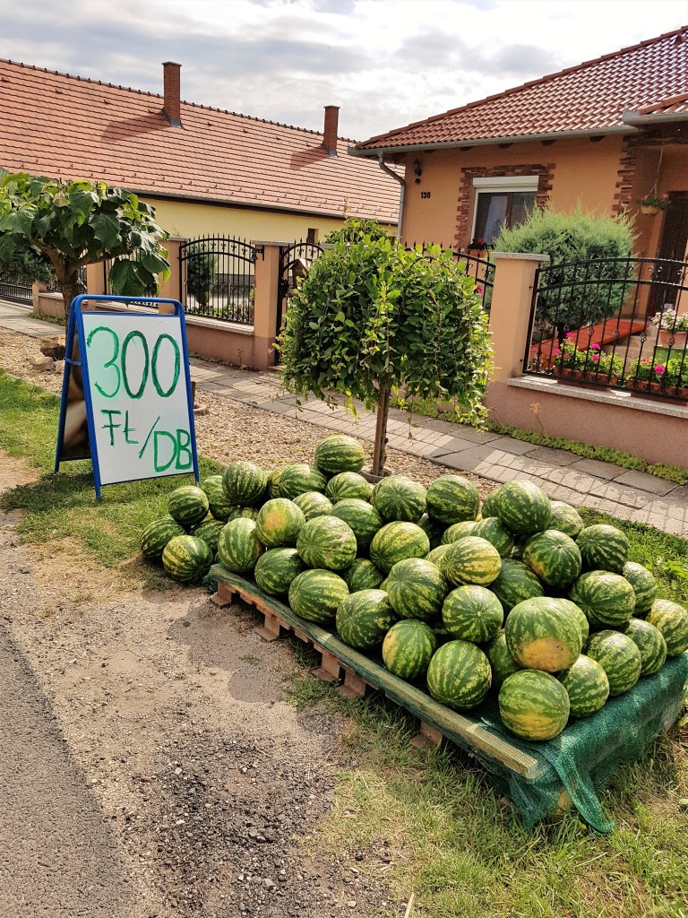 Watermelons sold from the roadside, grown in the village gardens. Cece, rural Hungary