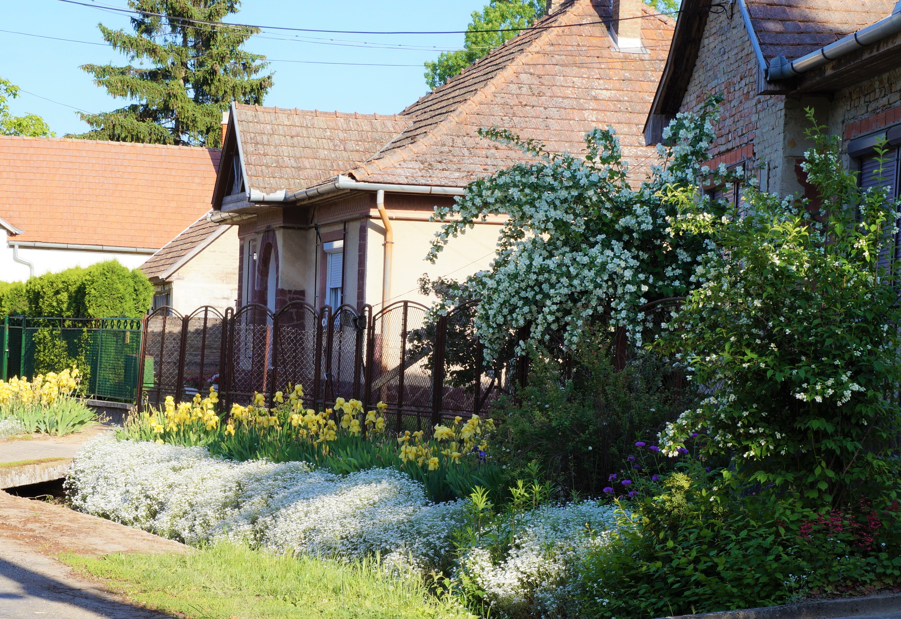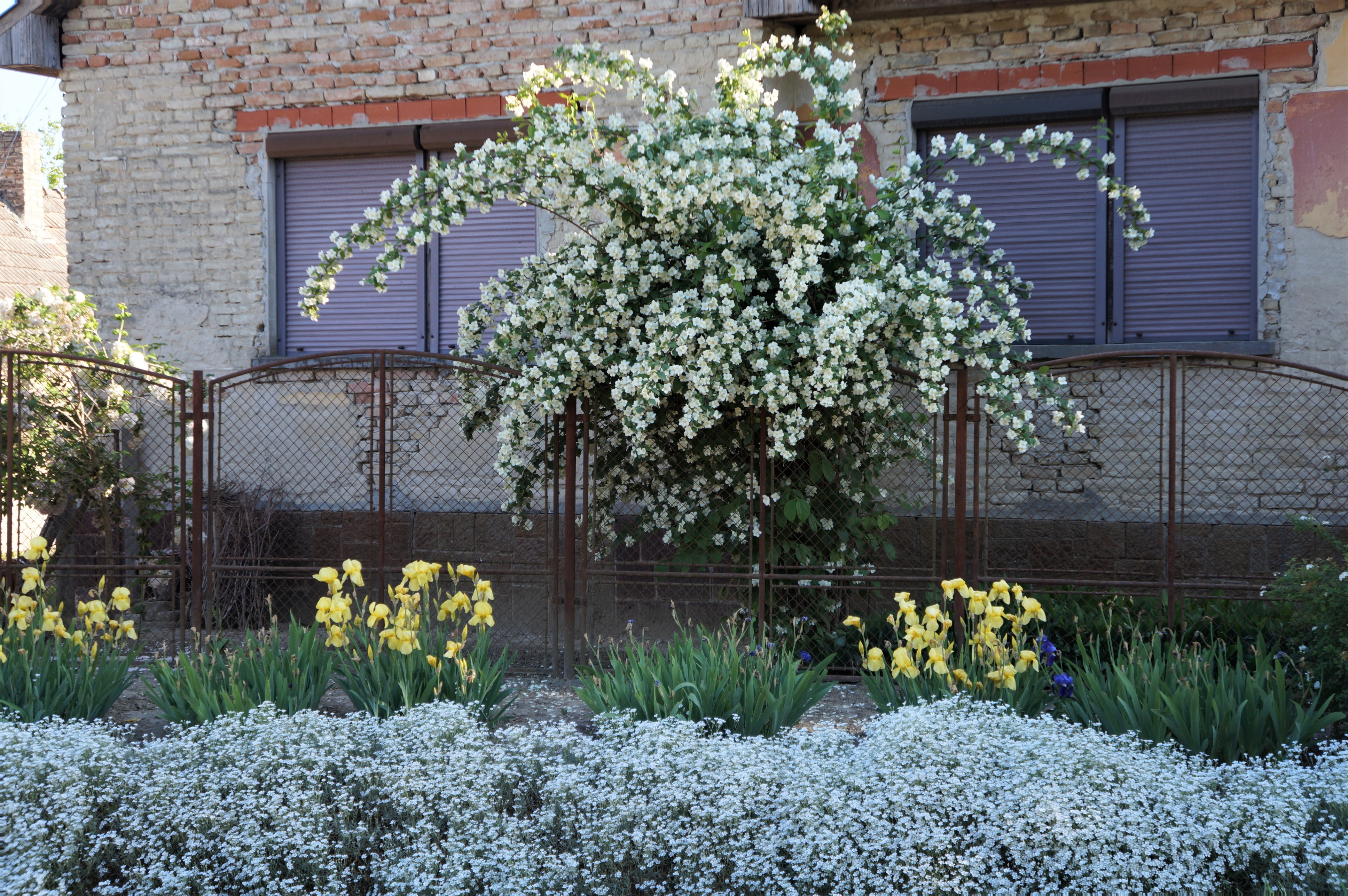 Our little village is full of overflowing gardens everywhere you look, this particular one caught my eye, obviously a lot of work went into this with a stunning result, and the bonus…the Mock Orange smelt heavenly!! I took these photos late afternoon hence the lengthening shadows. A beautiful time to explore the village with its changing seasonal beauties. Each month I have taken a walk around Kisszékely with my camera to record nature’s changes. It is amazing how quickly Mother Nature has awoken to brighten our world.