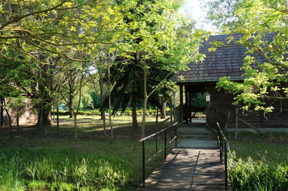 Across the wooden bridge over the reed filled river and to the entrance of the swimming pool area. Open during the hot summer months it’s very well attended. There are wooden picnic tables and huge trees to sit among on the grass. There is also an outdoor oven for Al Fresco dining if you like!