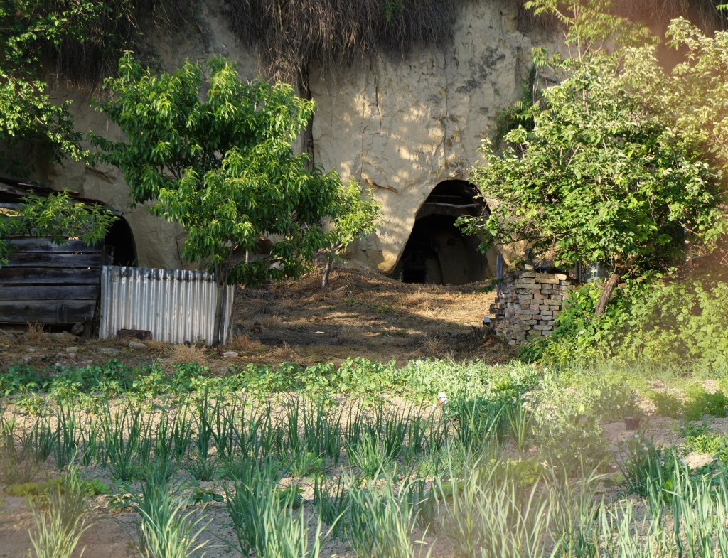 The trees all seem to be heavy with lovely blooms. The other photo shows caves made into the hillside usually at the end of a person’s garden. They are used for storage and are quite a common sight. This garden had a wire fence around it, and a yappy dog, I had to be quick peering through the fence, you can see the bronzing in the photo.