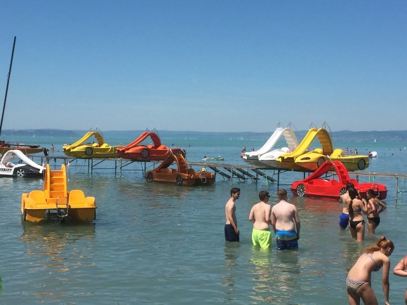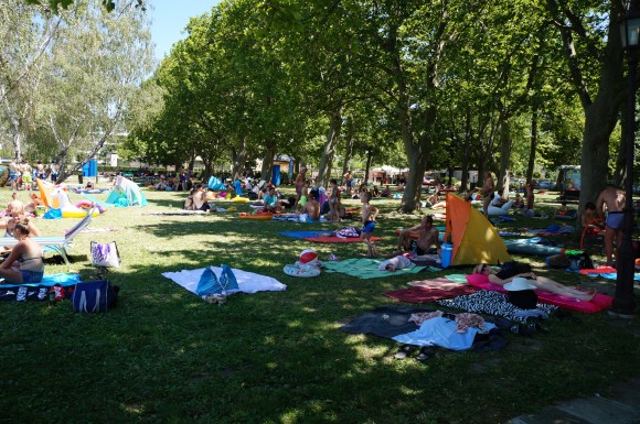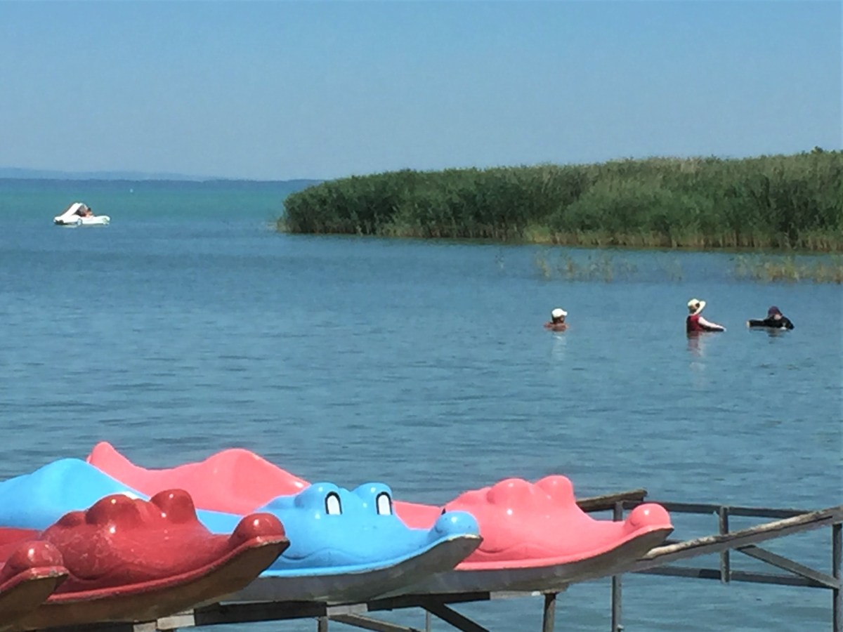All my younger life I had associated beaches with sand, I had never considered beaches with grass before. Hungary offers plenty of beaches around Lake Balaton some sandy and some with grass. Eric and I have not actually swam in the lake before so it was to be our “virgin visit”! Our son has visited and swam in the lake so I asked him what he thought about grassed beaches. He actually said the experience of visiting the beach with grass was ace, far better than with sand. The grass was cool on his feet, there was shade if he wanted it and access to the water was easy.