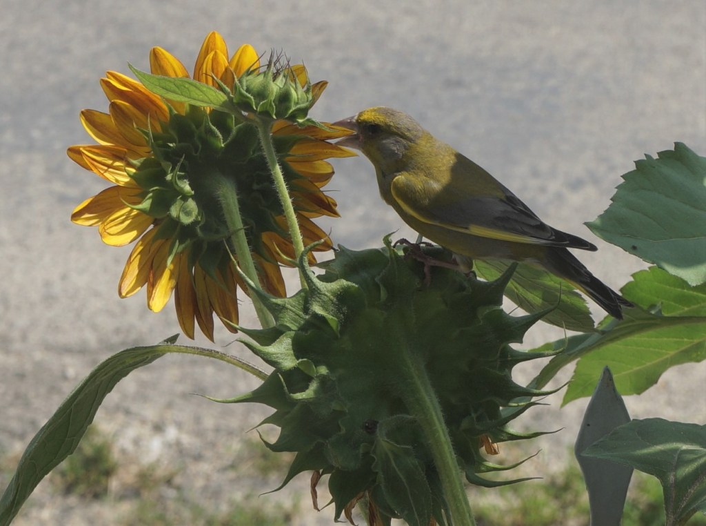 This is the view from our bedroom window… lots of delicious sunflower seeds for hungry finches.
