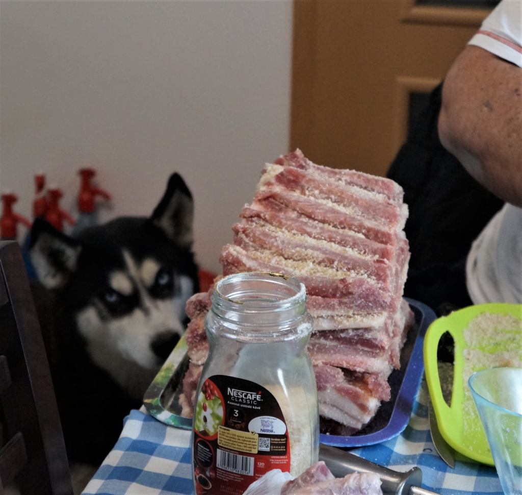 Our dog sat very patiently throughout the whole procedure hoping for a quick bite!