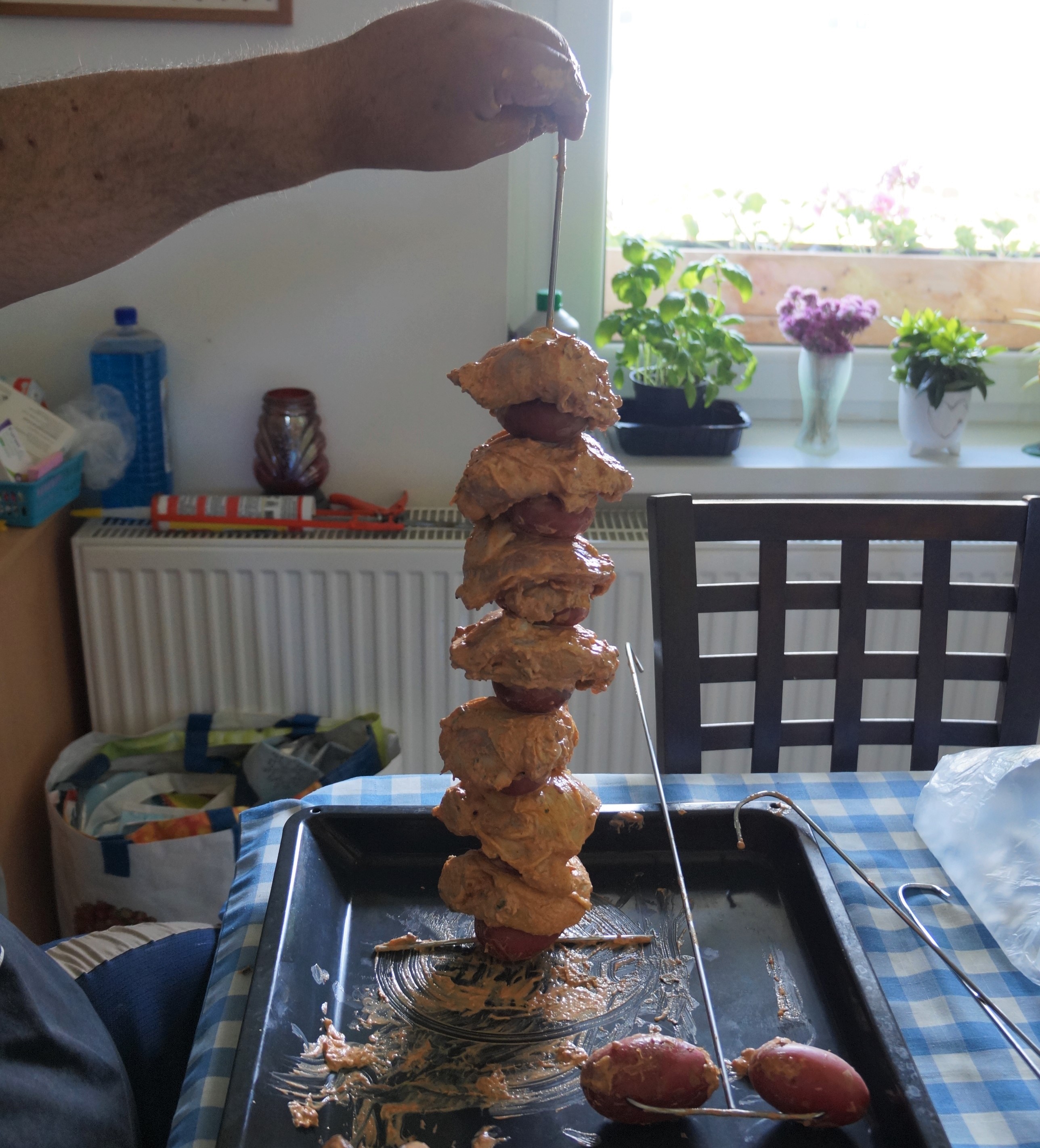 The boys in my life, my husband and my son have been busy in the garden making a Tandoori oven this week. Neither of us had built or cooked on a traditional tandoor before… originating from Turkey. I assumed it originated from India…!! How wrong I was. We did a virgin run yesterday and the results were fantastic. Apparently, according to our guests, you could smell the beautiful cooking smells all over the village! Our Hungarian neighbour was out gardening and was very curious to know what Eric and Raphael were building….he kept nodding and saying “egen” (yes in English) when Eric explained he was making an oven, I don’t think he really understood! We marked the occasion by inviting a couple of friends who live in our little village to be our virgin tandoor tasters. We had a very fun afternoon, with lots of laughter and good conversation. The food was great, expertly cooked by Chef Eric and enjoyed with great company, New Zealander Jackie and her Hungarian husband Gabor.