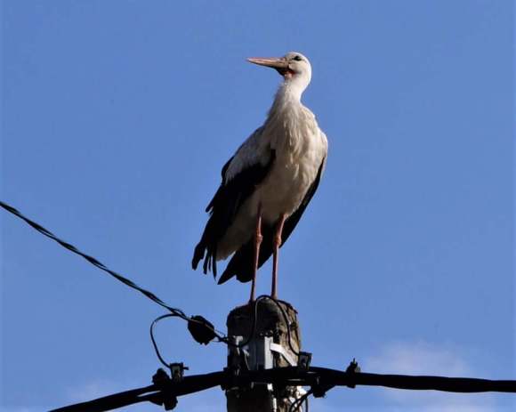 Our village in the Hungarian countryside is not usually honoured by visiting storks…there is not sufficient food sources to sustain them. They do however live in the neighbouring villages. This young man happened to visit our village (much excitement) and perched himself right outside our bedroom window. As you can see there is no platform for him to build his nest, it is up to the villagers to erect them and then hope for storks to visit and nest. There is one elsewhere in the village but for years they have not taken up residency yet.