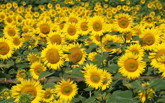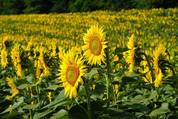 We are very lucky to have numerous sunflower fields in and around our village. The flower heads bob about and give an amazing display to the passer by. The fields are always bulging with a mass of yellows and greens. Quite spectacular.