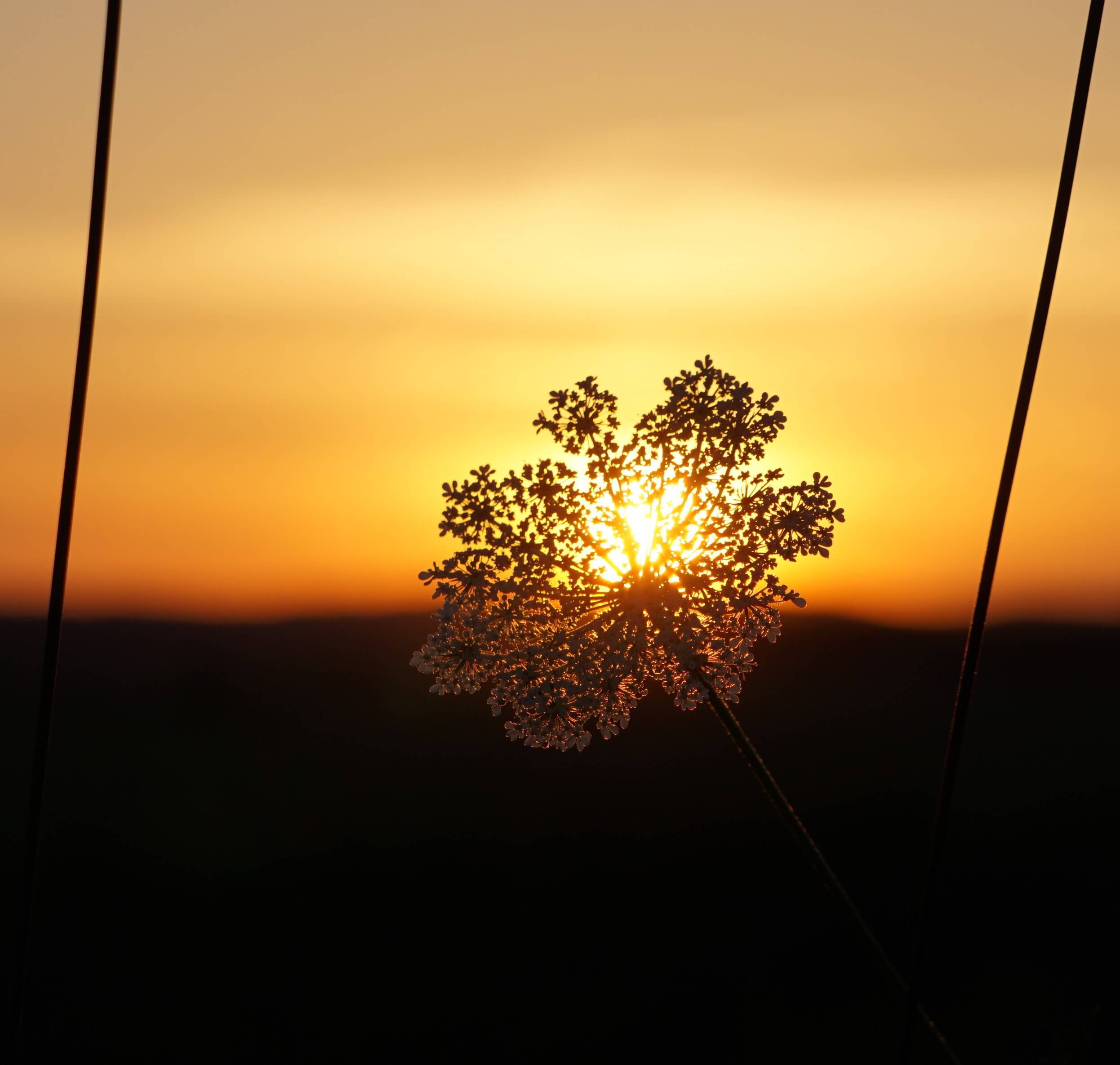 I love taking photos of the sunset, I also like to add a little interest in the photo. This, I think is what we call in the UK Cow Parsley, please correct me if I am wrong. Incidentally there were numerous cows in the field.