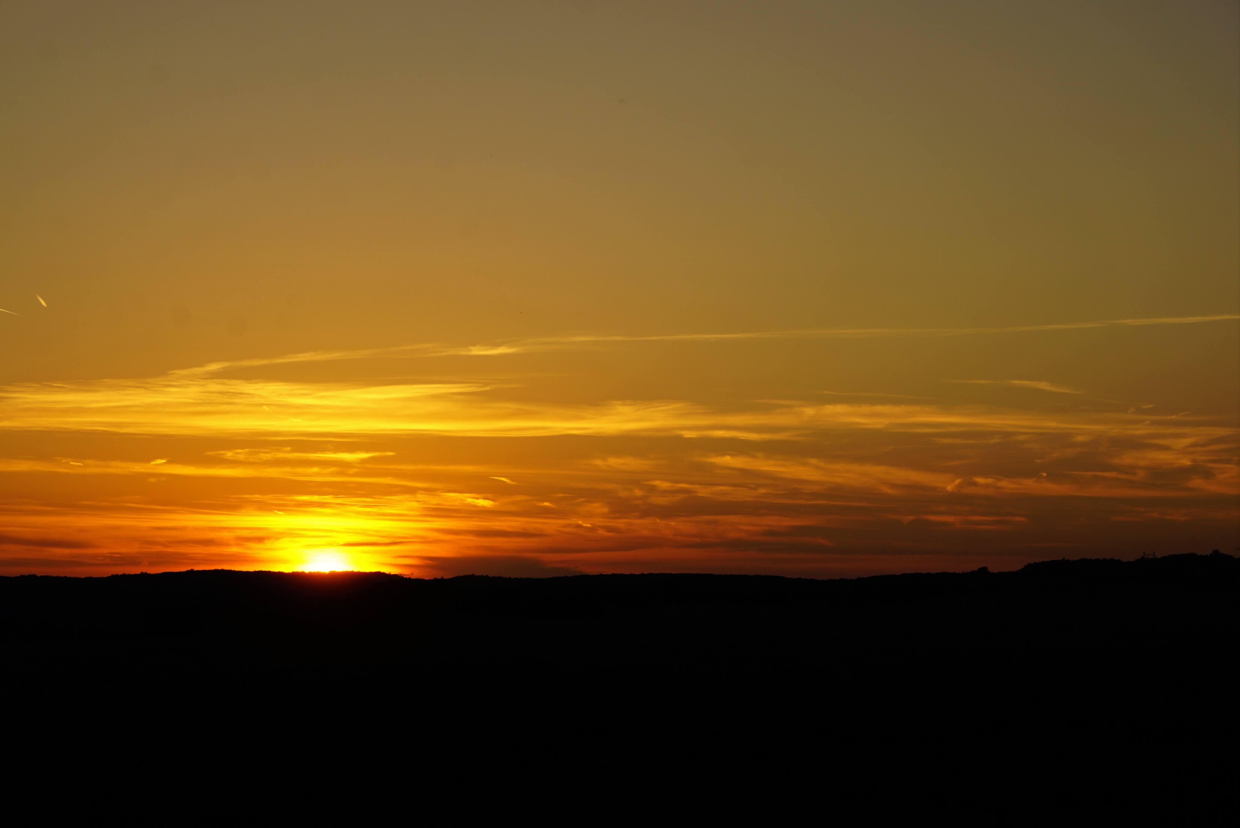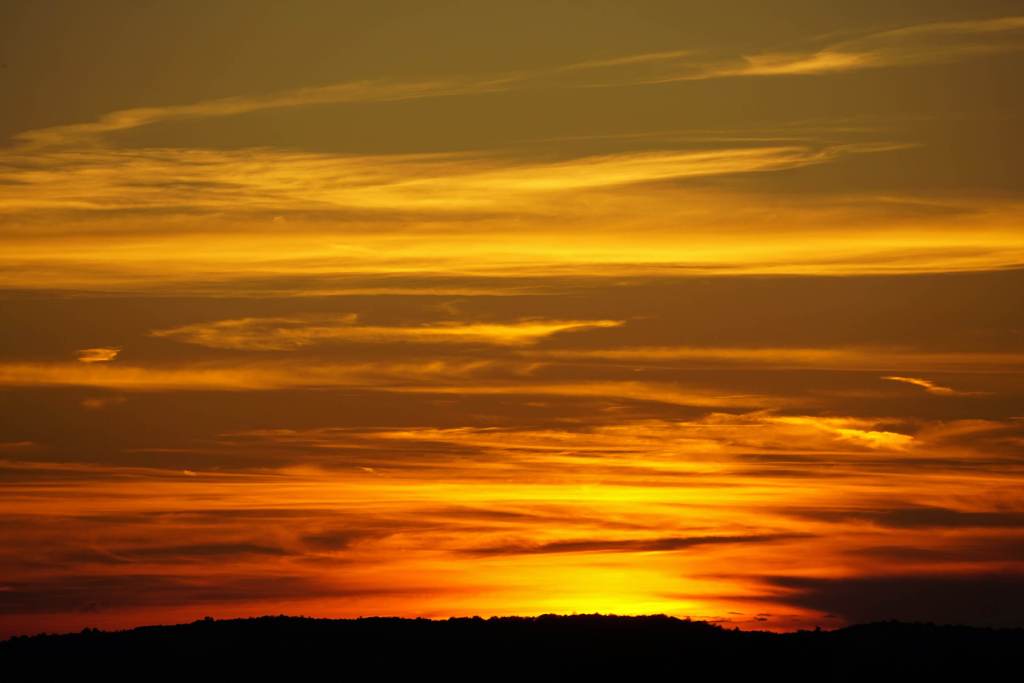 Our village is nestled in a valley with steep sides. When it came to photographing this particular sunset we had to drive to the top of the ridge to get the best views. It is accessed by a tractor track often rutted from the constant use of heavy tractors. We took our car up the track very slowly and cautiously, thankfully we did not have any damage done to the car or get stuck. (We have in the past got stuck in a rut – not funny!!) It was worth the effort.