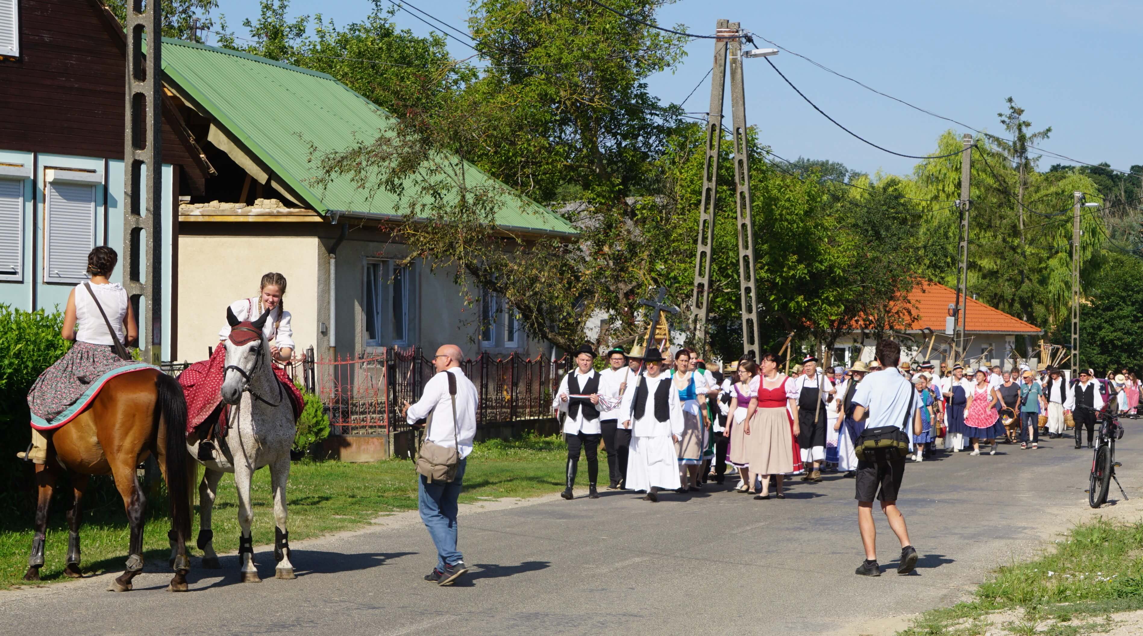 With promising July blue skies, the people of the surrounding villages gathered together in Kisszékely to make preparations for the annual Harvest Festival procession.