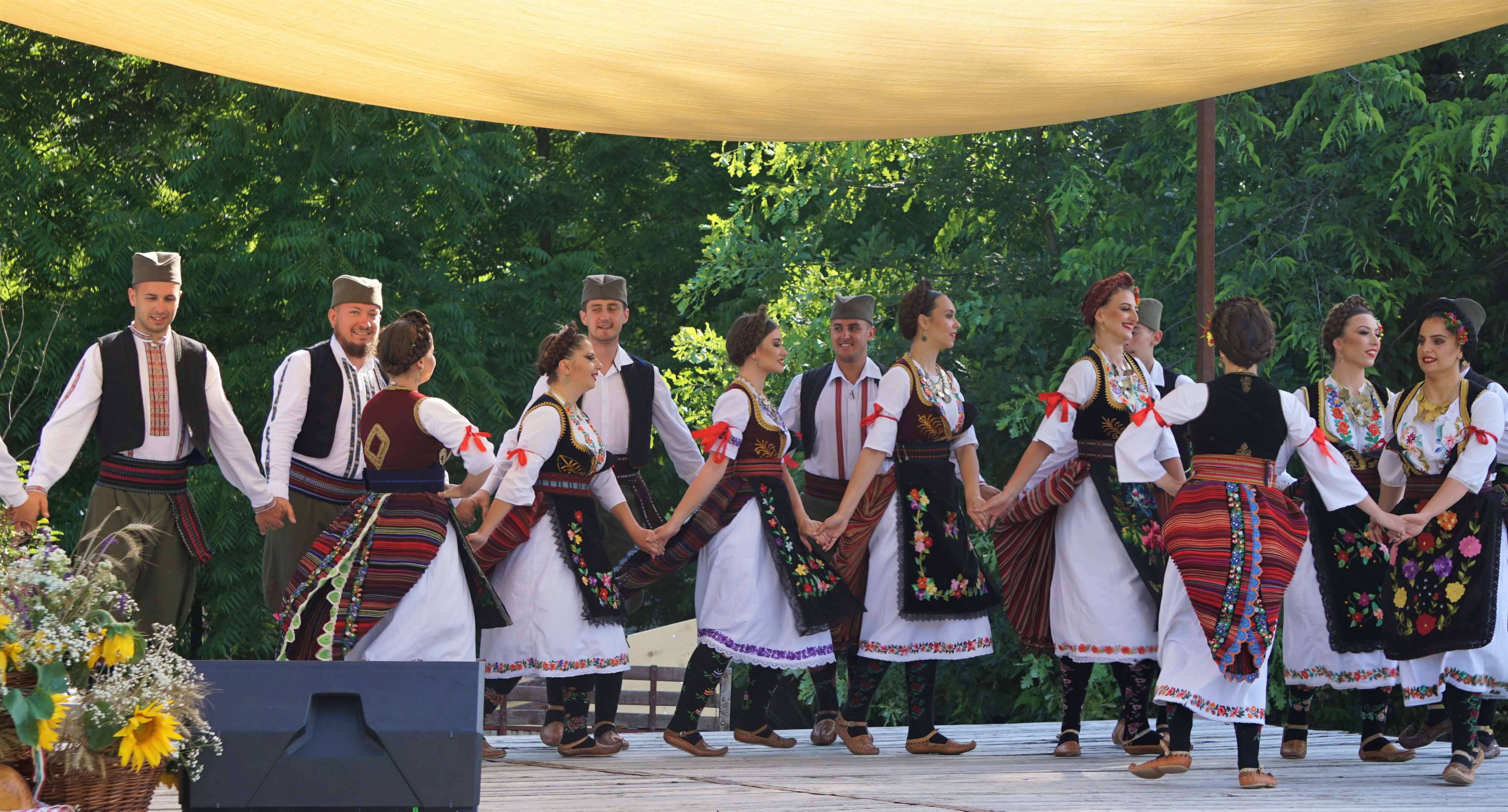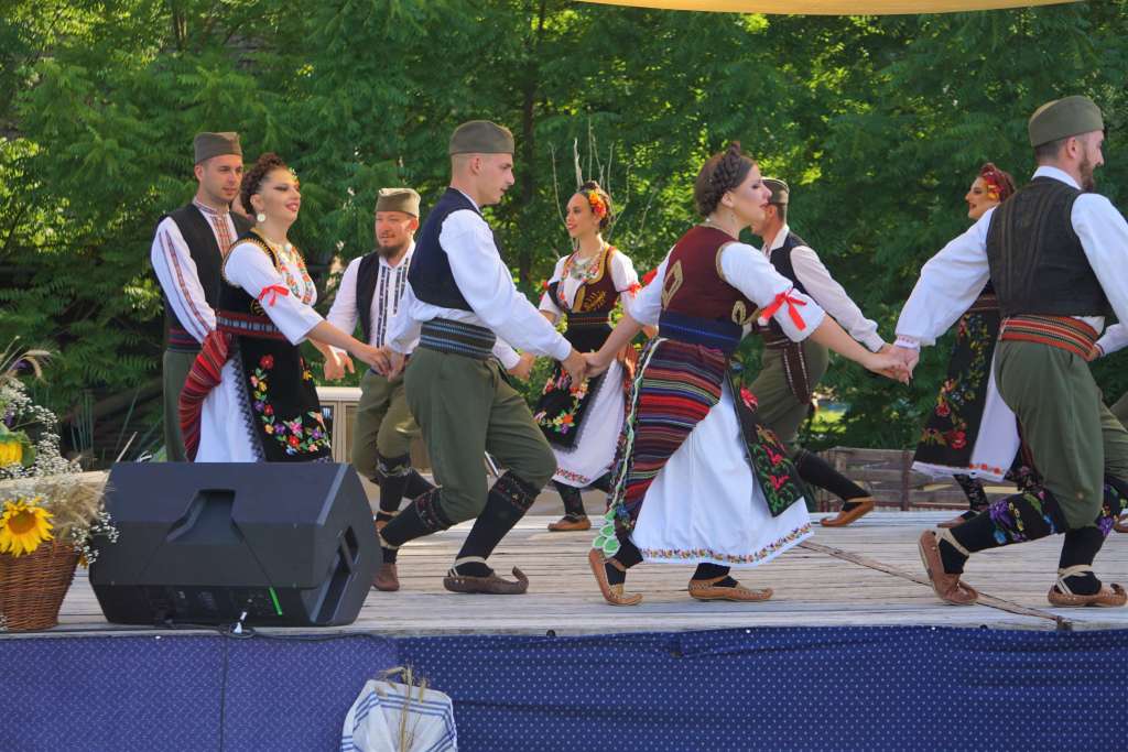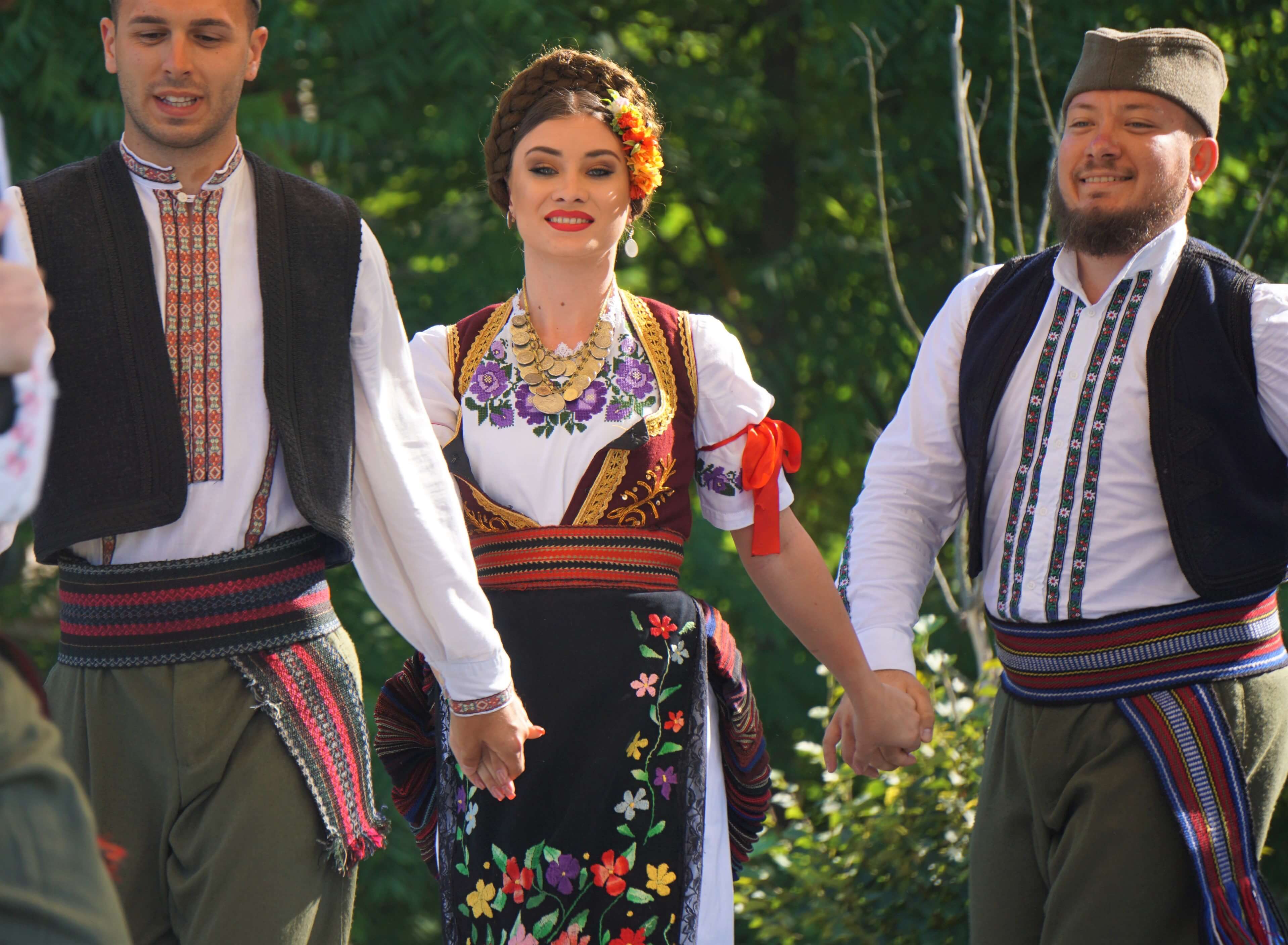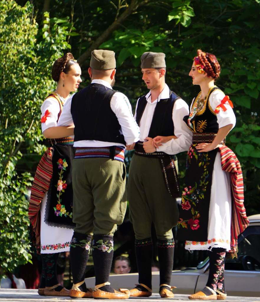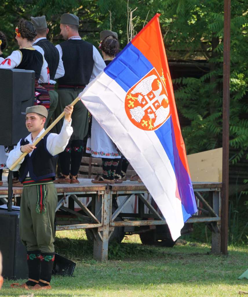 This is the Serbian flag and Serbian dancers who had visited the village to display their unique way of dancing.