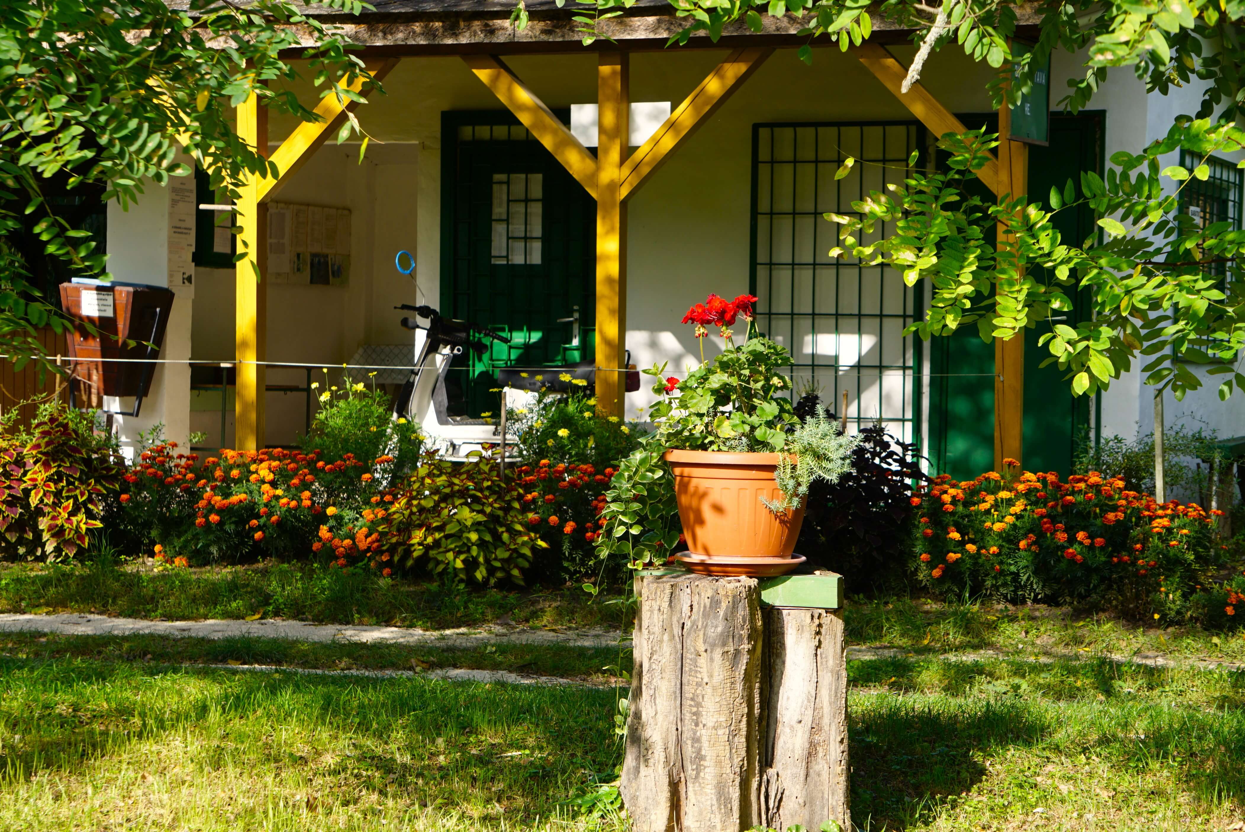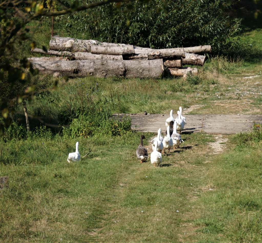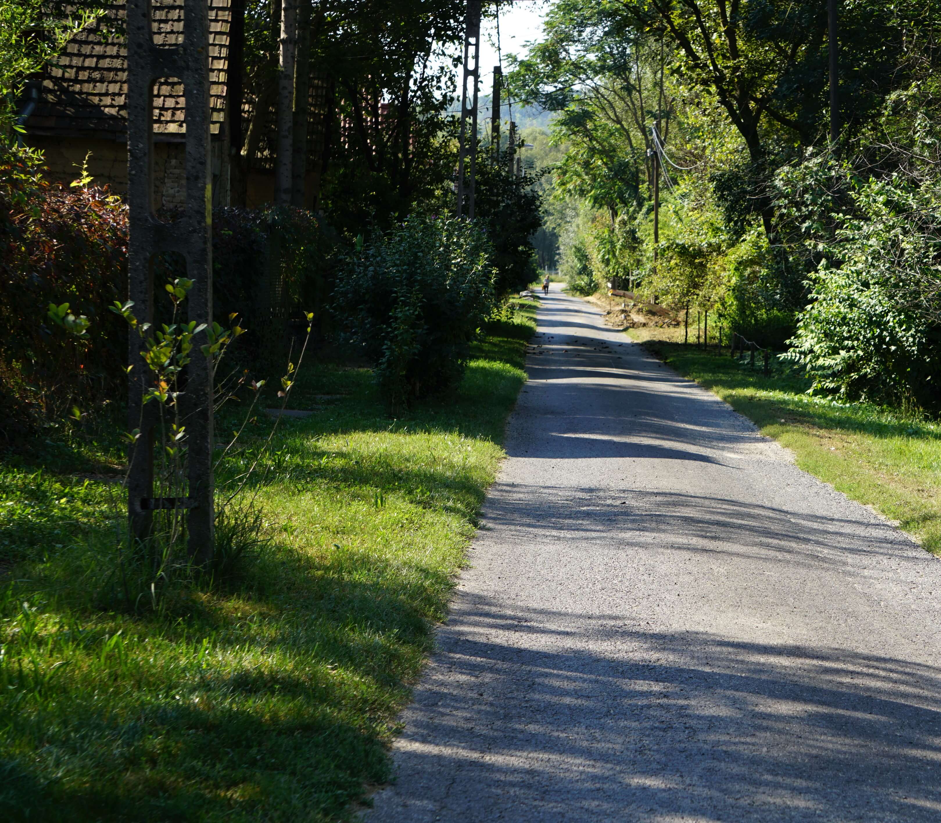 I think this shot encompasses Hungarian village life. A villager lovingly tends his tidy garden, appreciating everything growing. The Maypole pops up tall above the trees. Village life is so idyllic.