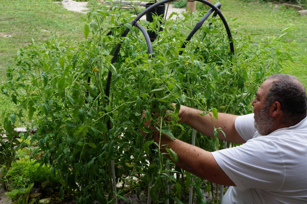 Last year our entire tomato crop was eaten by stink bugs. They seemed to only be interested in red tomatoes, the big ones…our miniature tomatoes were not touched, which I found a little strange.