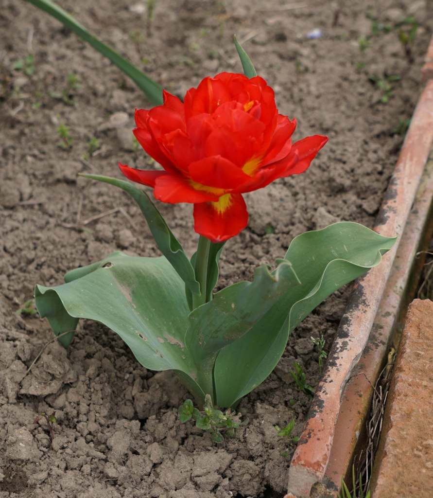 My one remaining red tulip, the last one left as the other five disappeared thanks to the digging mole rats who ate the bulbous roots of these beautiful flowers. My daffodils did not escape attack either and sadly I lost a few of those too.