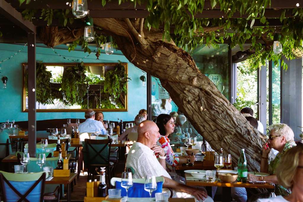 On closer inspection of my photograph, I mentally complemented the restaurant designers, first for the beautiful calming blue and green theme running through the restaurant. Secondly, for the positioning of the huge mirror on the back wall reflecting the lush greenery across the veranda.