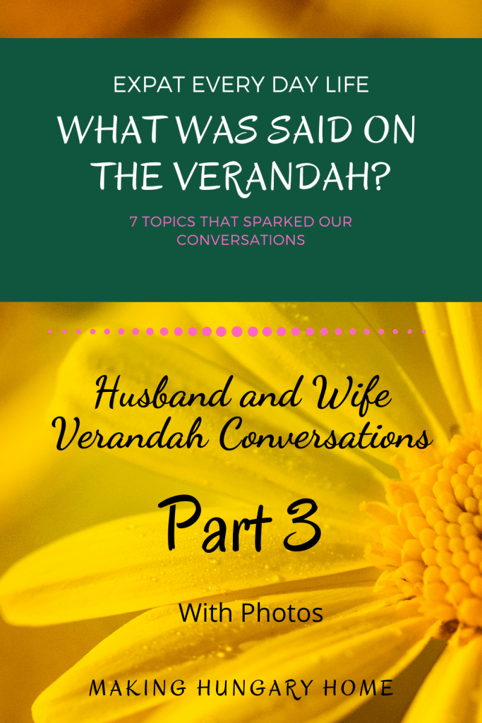 Just a bit of fun and an insight into what these retired expats talk about whilst living in Hungary. There will be more “Verandah Conversations” very soon.